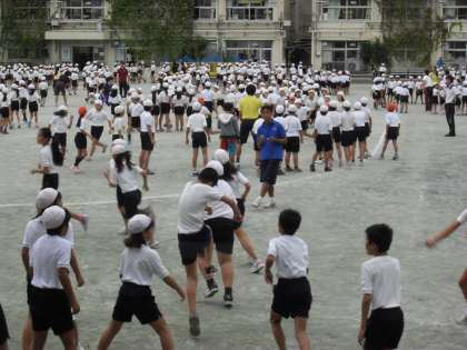 10/3 体育朝会〜第2回長縄朝会〜 公開日 2012/10/03 更新日 2012/10/03 校長室より 今日の体育朝会は第2回長縄朝会です。前回から各学級では朝や休み時間を使って練習して来ました。目指すはクラスの自己記録更新です。子どもたちの目の色が変わっていました。自分たちのクラスにあった目標を立てて挑戦しています。何よりも必要なのは、クラスのチームワークです。クラスの一人一人が大切な一人なのです。長縄朝会はあと1回、各クラスの挑戦は更に続きます。