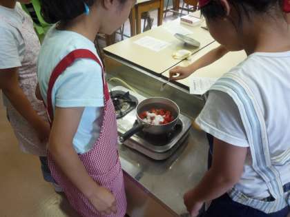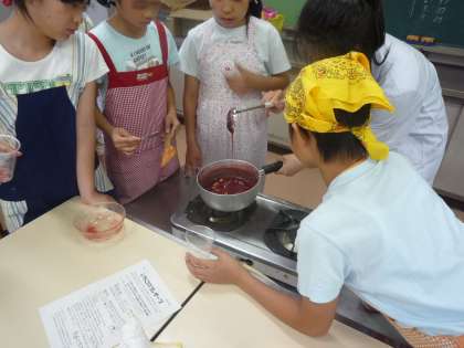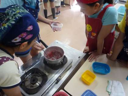 料理クラブでは「いちごのプレザーブ(いちごのジャム)」を作りました。