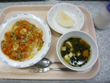 10/11 本日の給食 公開日 2012/10/11 更新日 2012/10/11 給食 〜今日の献立〜 あんかけチャーハン 牛乳 わかめスープ くだもの(梨) 今日の果物は、今が旬の「梨」でした。秋には、たくさんのおいしい食べ物が旬を迎えます。旬の味を味わってもらいたいです。 食材がとれたところ・・・ 閉じる 米…北海道 豚肉…静岡県 鶏肉…岩手県 しょうが…高知県 長ねぎ…青森県 にんじん…北海道 大根…北海道 にんにく…青森県 梨…新潟県