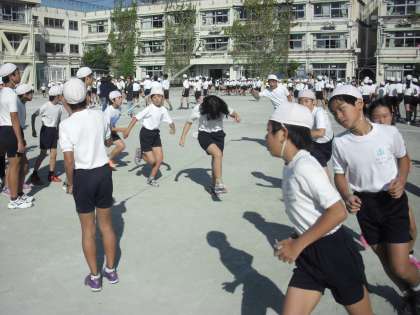 今日の体育朝会は、最後の長縄朝会です。これまですべてのクラスが、休み時間等を利用して一生懸命取り組んできました。その成果を発表する機会ですので、どのクラスも真剣そのものです。朝会の場で最高記録が出たクラス、残念ながら出なかったクラスもありますが、これまでの、一人一人を大切にしながらの真剣な取り組みが何よりも尊いのです。これまでよくがんばりましたね。