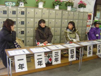 2/12 学校公開週間初日・・・ 公開日 2008/02/12 更新日 2008/02/12 校長室より 3学期の学校公開は、2月12日から始まりました。中心の授業参観は、13日(水)です。 13日には道徳授業公開講座があります。6校時には篠山スクールカウンセラーと一緒に協議会を行ないます。テーマは「きく・・・聞く・・・聴く・・・」です。 寒い中の受付は、PTA学級代表委員の方々にお手伝いを頂いています。 ありがとうございます。