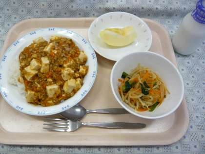10/29 本日の給食 公開日 2012/10/29 更新日 2012/10/29 給食 〜今日の献立〜 麻婆豆腐丼 牛乳 ナムル くだもの(りんご) 今日のごはんは、「麻婆豆腐丼」でした。用賀小学校では、2つの釜で作り、低学年と高学年で辛さを変えて作っています。 食材がとれたところ・・・ 閉じる 米…北海道 豚ひき肉…静岡県 にんにく…青森県 しょうが…高知県 長ねぎ…青森県 にんじん…北海道 もやし…群馬県 りんご…長野県