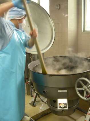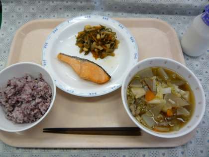 写真は、黒米ごはんを配缶している様子と、刻み昆布の五目煮を作っている様子です。刻み昆布の五目煮は苦手な児童が多かったようで、いつもよりも残菜が多かったです。苦手なものも少しずつ食べられるようになってくれるとうれしいです。