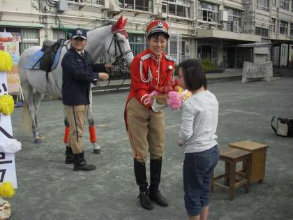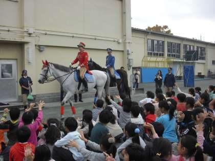 集会の終わりに、お馬さんの大好きなりんごをプレゼントしました。お馬さんは、みんなの周りを1周して馬事公苑に帰って行きました。