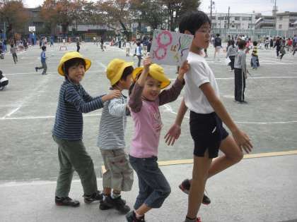 11/13 なかよしタイム〜とっても楽しい!〜 公開日 2012/11/13 更新日 2012/11/13 校長室より なかよしタイムは、用賀小学校の特色ある活動の一つです。一つの班に1年生から6年生までの友達が集まって楽しく遊ぶのです。もちろんリーダーは6年生です。1年生から6年生までが楽しく遊べるものを考えるのは並大抵のことではありません。遊びを終えた1年生から「6年生はやさしい」「とっても楽しいです」という声が聞こえてきました。6年生いつもありがとう。