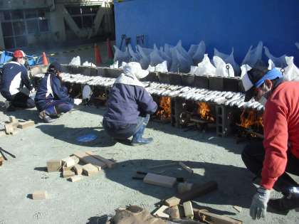 今日は、2年生がやきいもをしました。2年生は、裏の畑でさつまいもを育ててきました。その収穫したいもをいただく学習です。しかし、学校で育てた畑のいもは不揃いで、量も足りませんので、八百屋さんから買い足してのやきいも会です。
