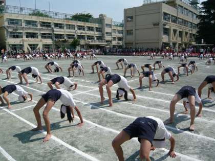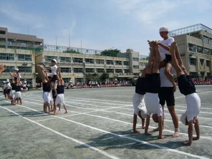 6/2 運動会 再開 6年組体操その1 公開日 2009/06/02 更新日 2009/06/02 今日のできごと 突然の雨のため中断していました組体操の再開です。平日にもかかわらず、大勢の地域の方々やPTAの方々に駆けつけていただきありがとうございます。用賀小学校の6年生は幸せです。 それでは、組体操の写真をお送りします。午前の太陽の光は本部からは逆行となります。やや画が暗くなることはお許し下さい。