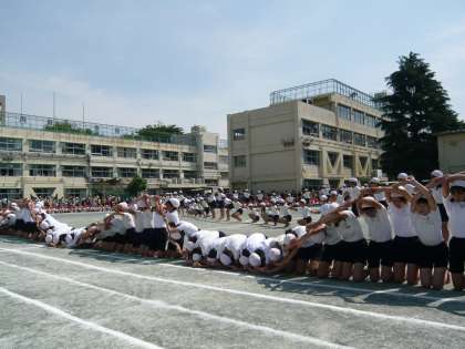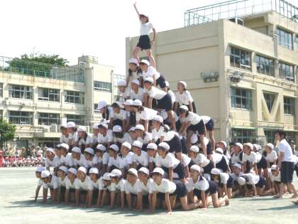うって変わって、今日の晴天は、まさに運動会日和です。6年生の組体操は、体力・技術にチームスピリットが加わってはじめて成功するのです。