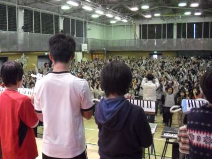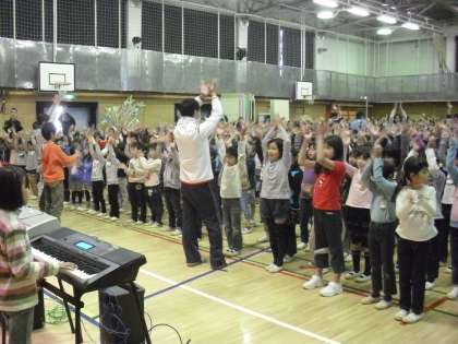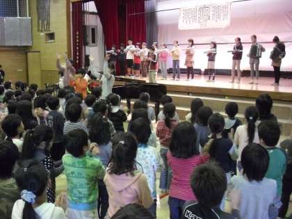 11/21 音楽集会〜学芸会の歌〜 公開日 2012/11/21 更新日 2012/11/21 校長室より 今日の音楽集会は学芸会で歌う「まくをあけよう」を練習しました。音楽委員会の子どもたちの伴奏に合わせて、楽しそうに大きな声で歌っていました。途中に手拍子も入る昔から続いている歌です。ぜひ、保護者の皆さんも懐かしいこの歌を、一緒に口ずさんでください。