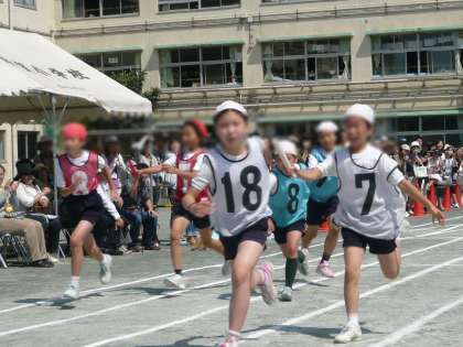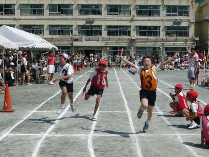 6/2 運動会 再開 高学年リレー 公開日 2009/06/02 更新日 2009/06/02 今日のできごと はじめに、高学年リレーの様子をお届けいたします。さすがは、高学年。走りの力強さが違います。特にバトンパスは、中学生にも負けないほどのパスがいくつも見られました。 歯を食いしばってのデットヒートは、見ているものの心を熱くさせ、大声の声援が校庭に響き渡りました。