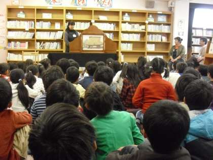 11/22 2年生お話し会〜玉川台図書館の皆さんありがとう〜 公開日 2012/11/22 更新日 2012/11/22 校長室より 今日は2年生を対象に、「玉川台図書館」の皆さんによるお話会がありました。 大型絵本「どうぞのいす」、わらべ歌、大型紙芝居「たべられたやまんば」、「島ひきおに」など、盛りだくさんのお話会となりました。 玉川台図書館の皆さんの巧みな話術に、子供たちは首をながーくして楽しんでいました。いつもありがとうございます。
