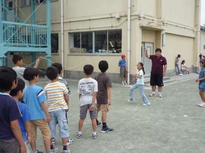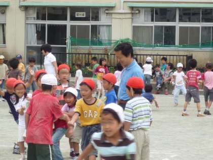 もっともっとたくさんの先生と子どもたちの風景をお届けしたかったのですが、校庭中を走り回っている元気な先生の写真が撮りきれませんでした。後日休み時間の様子でお送りします。