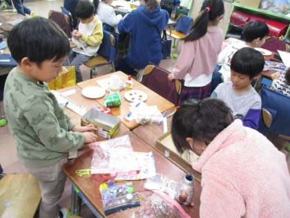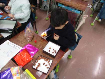 自分たちで拾ったどんぐりを使って、おもちゃ作りなどの活動に取り組んでいました〜