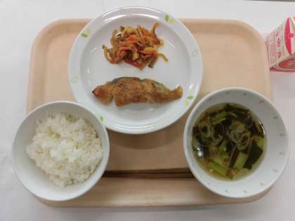 ごはん 魚のからしみそ焼き じゃがいものきんぴら すまし汁 牛乳