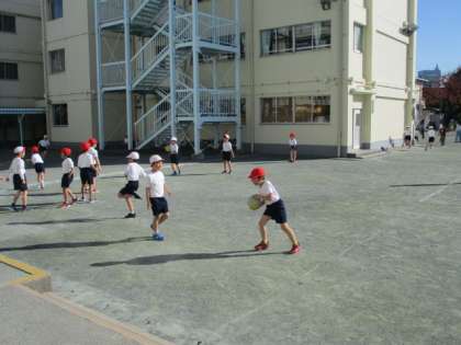 休み時間は元気に外遊び〜 ボール遊び、鬼遊び、縄跳びなどをして楽しむ用賀小の子どもたちです〜