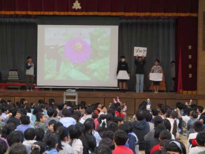 理科委員会の児童が日常の活動内容をクイズ形式で紹介しました〜