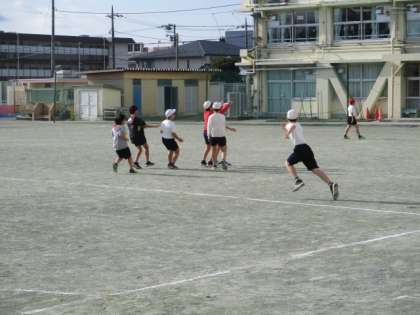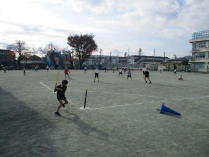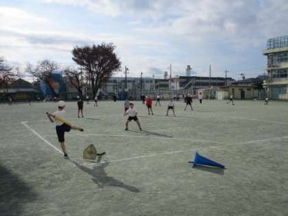 ボール運動〜5年 公開日 2024/12/05 更新日 2024/12/05 今日のできごと 高学年の「ベース型」のボール運動の学習です。 ボールを打つ攻撃と、隊形をとった守備での、簡易化されたゲームに挑戦しました〜