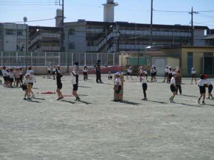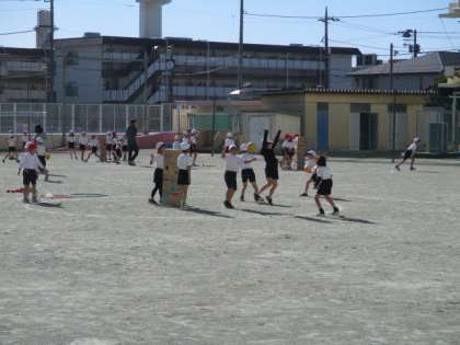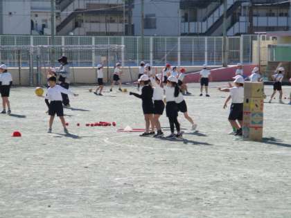 低学年のボールゲームの学習です。 目当てや作戦を立て、易しいゲームに挑戦しました〜