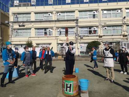 地域の駐在のお巡りさんも様子を見守りお餅をついてくださいました。