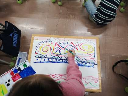 すいすいぐるーり 1年 公開日 2024/12/13 更新日 2024/12/13 今日のできごと 「えのぐとふでで、かみの上をぼうけんしよう」 「見て見て!」友達同士で声を掛け合いながら楽しんでいます。