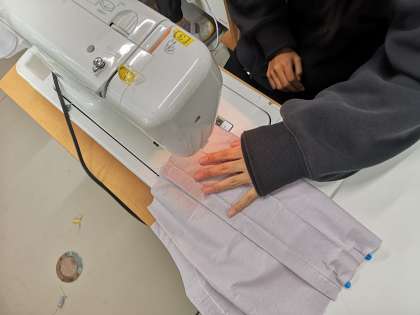 ミシンにトライ! 5年 公開日 2024/12/13 更新日 2024/12/13 今日のできごと 「見て見て!」「できたよ!」と直線縫いをしたウォールポケットを見せてくれました。上糸と下糸を慎重に通したり、丁寧にまち針をうったり、真剣な表情が印象的でした。