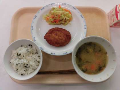 わかめごはん おび天 おかかあえ みそ汁 牛乳