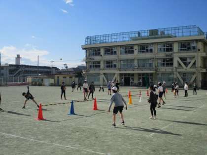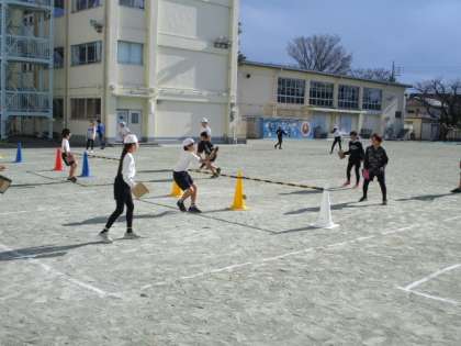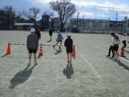 ボール運動〜6年 公開日 2024/12/23 更新日 2024/12/23 今日のできごと 高学年のボール運動(ネット型)の学習です。 ボール操作とチームの作戦に基づいた位置取りによって、ボールを用具をつかって操作するゲームに取り組んでいました〜