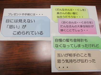 全校朝会〜 公開日 2024/12/23 更新日 2024/12/23 今日のできごと 放送を使って全校朝会を行いました〜 校長からは、オーヘンリーという人が書いた「賢者の贈り物」という話を紹介し、目には見えないけれど、互いが相手のことを思うあたたかな「気持ち」「思い」で、人はとても幸せになれるということを伝えました。 看護当番からは今週の目標について話しました。 今週3日で2学期が終了です。締めくくりをしっかりと迎えましょう・・・