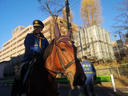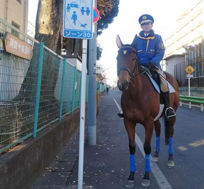 本日は、用賀小学校に初めて「ナイドルフ号」が来ました。まだ、競走馬の時のお名前です。初めて来たとは思えない堂々たる学童交通整理の姿です。騎乗している警察官の方も褒めていらっしゃいました。ありがとうございます。また来てくださいね。用賀小の子どもたちも交通安全に気を付けて頑張ります。