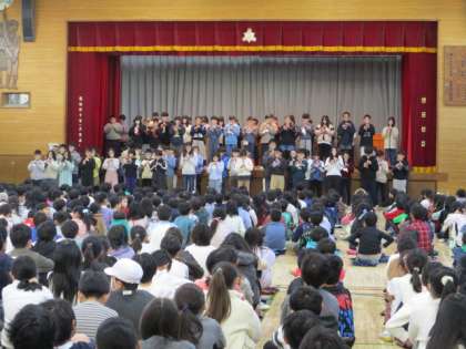 用賀小の体育館に、すてきな歌声とリコーダー演奏が響きわたりました〜