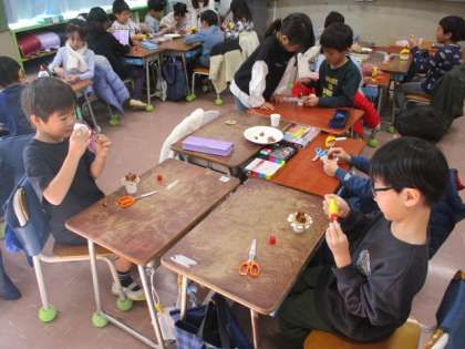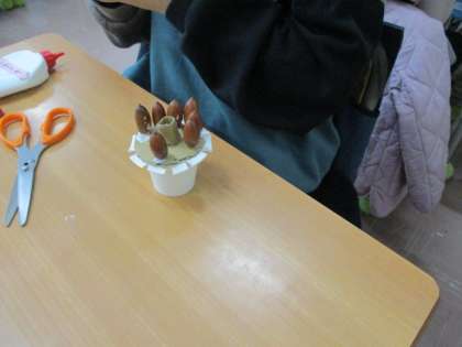 2学期に拾ったどんぐりを使っての工作も進行中〜