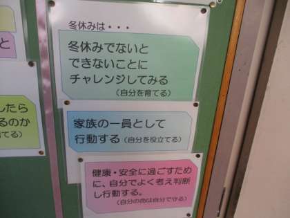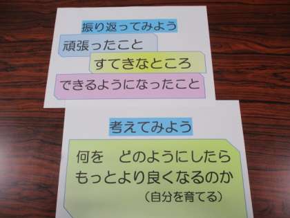 校長からは、2学期を振り返って、自分で頑張ったこと、すてきだったこと、できるようになったこととともに、今後こうするとよいということも見つけてみようと伝えました。