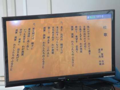 代表児童が2学期の取組等を振り返ったことについて話しました。 またみんなで用賀小学校の校歌を歌いました〜