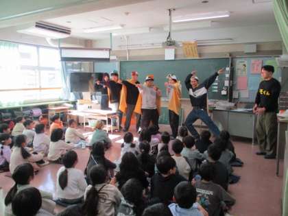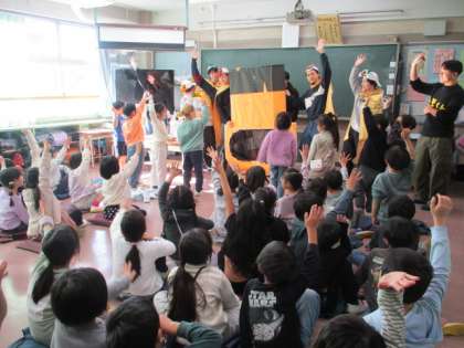 ベジレンジャー来校〜1年 公開日 2025/01/14 更新日 2025/01/14 今日のできごと 近隣の東京農業大学の学生さんたちが来校して、1年生の野菜を食べることの大切さについてついてわかりやすくゲームなども取り入れ、伝えてくれました〜
