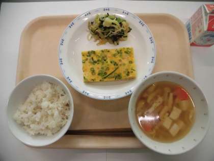 麦ごはん 卵焼き 野菜ののりあえ 吉野汁 牛乳