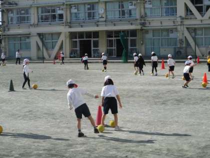 ボールけりゲームに向けて〜2年 公開日 2025/01/20 更新日 2025/01/20 今日のできごと ボールけりゲームの活動に向け、ボールを操作する動きに挑戦です〜 途中のコーンをうまく回ることができたでしょうか・・・