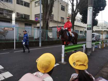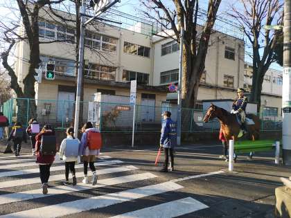 本日と昨日の警視庁交通騎馬隊 公開日 2025/01/22 更新日 2025/01/22 今日のできごと 本日は「ナイドルフ号」、昨日は「太陽号」が交通安全のために来てくださいました。児童の健康と安全が第一です。そのために活動いただき、感謝申し上げるとともに、自分たち自身も気を付けていくことが大切です。