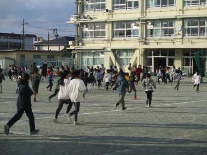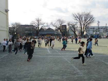 今日の体育朝会は持久走です〜 一定の時間、自分のペースで走りました〜