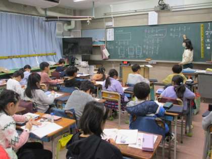 算数のコース別学習です。 同分母の加法、減法の計算方法を考え説明する学習が進んでいました〜