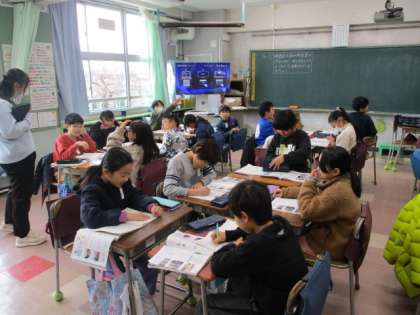 染め物の盛んな新宿区〜4年 公開日 2025/01/27 更新日 2025/01/27 今日のできごと 4年生の社会科の学習では、都内の特色ある地域でのまちづくりや産業の発展の様子について学習の問題を追究・解決する活動に取り組みます。 染め物の盛んな新宿区の様子について調べていく学習が進んでいました〜