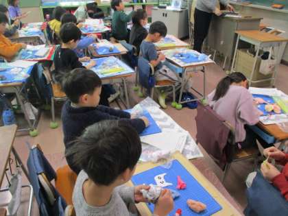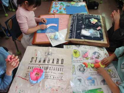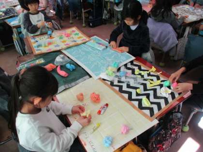 粘土を使っての造形活動です。 思いを形に・・・ みんなで楽しく活動していましたね〜