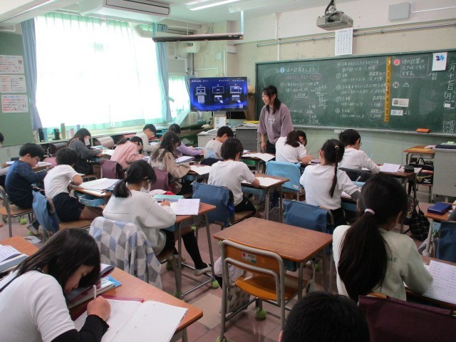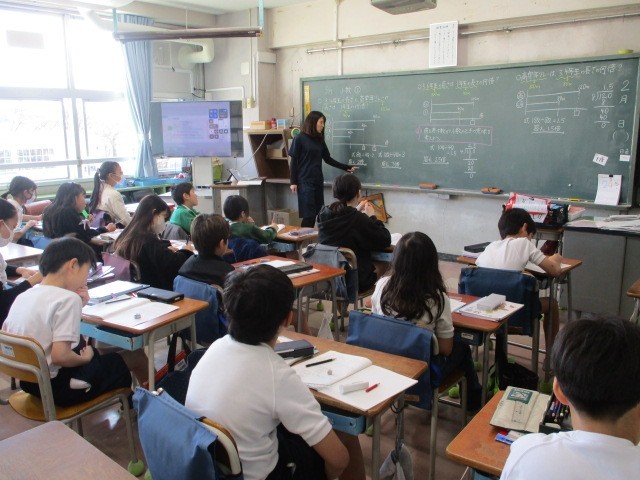 小数と倍~4年 公開日 2025/02/17 更新日 2025/02/17 今日のできごと 算数のコース別学習です。小数が何倍かを表すのに用いられることについて、計算を基に考え、説明する学習にとり組んでいました~