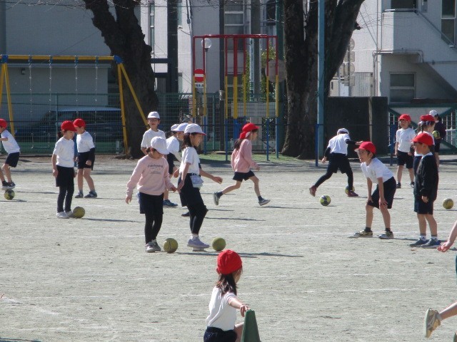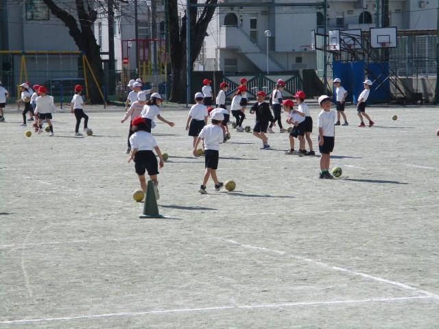 簡単なボール操作と、攻め、守りなどの動きを学習していました~
