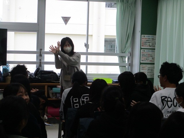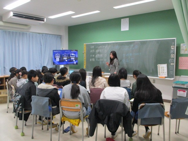 リアル職業調べ「夢プロジェクト」~6年 公開日 2025/03/08 更新日 2025/03/08 今日のできごと ゲストティチャーの方々に仕事の内容や、今の仕事に就いた理由などをお話しいただき、子どもたちの質問等にもお答えいただきました。保育士の方が、子どもたちと活動する指遊びを披露してくださり、6年生も童心に帰って楽しむひとこまもありました。子どもたちも真剣に話をお聞きしていました。貴重な学習の場をご準備くださり、どうもありがとうございました~