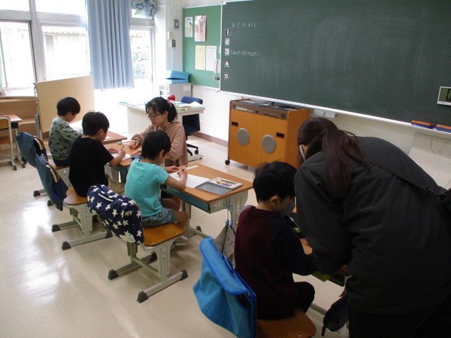 わかたけ学級での学び~ 公開日 2025/04/11 更新日 2025/04/11 今日のできごと わかたけ学級の子どもたちも、それぞれの荷物の片付け方や持ち帰り方、自己紹介カードづくりなど、グループでの学習に取り組んでいました~