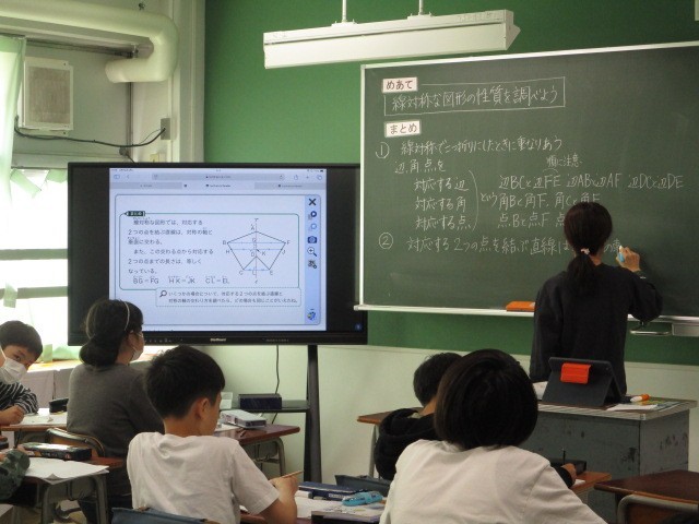 つり合いのとれた図形を調べよう~6年 公開日 2025/04/14 更新日 2025/04/14 今日のできごと 算数のコース別学習が始まりました~対称な図形についての学習です。図形の特徴をとらえる学習が進んでいました~