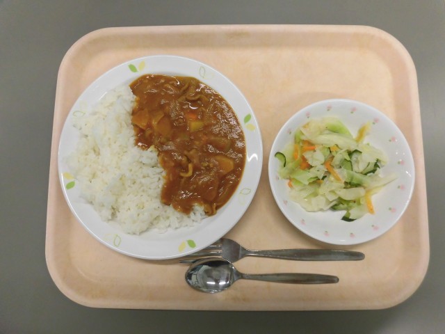 ポークカレー フレンチサラダ 牛乳