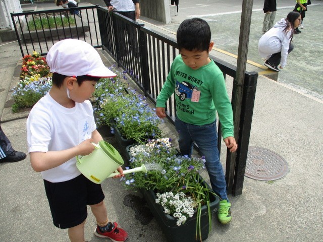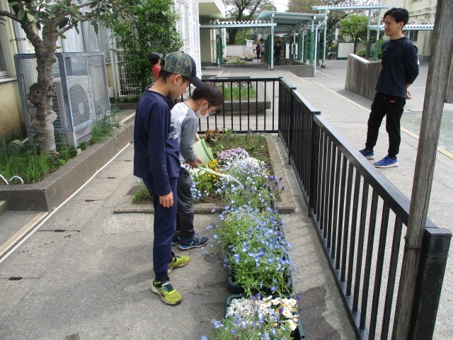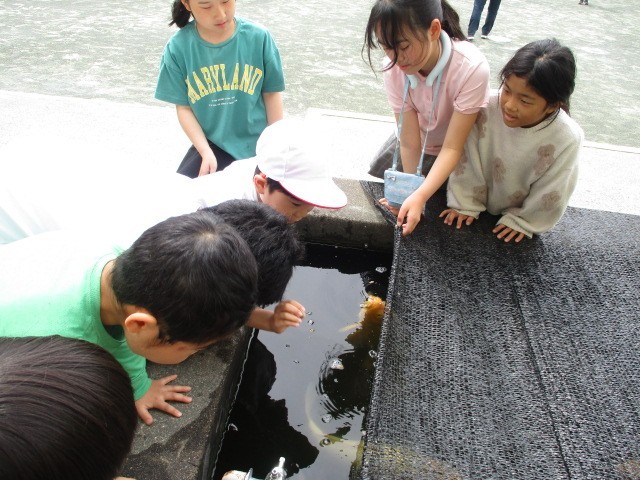池の鯉にえさをあげたり、花の水やりをしたり・・・・