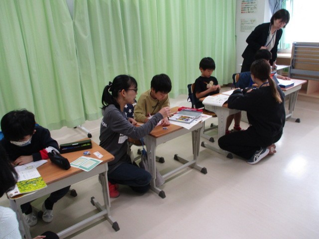 グループ別学級~わかたけ学級 公開日 2025/04/23 更新日 2025/04/23 今日のできごと わかたけ学級のグループ別の学習です。2年生は、国語・・・春を感じるものを見付けて、文章や絵で表現していました~1年生は、算数・・・・1対1対応で、どちらが多いかを調べていきました~