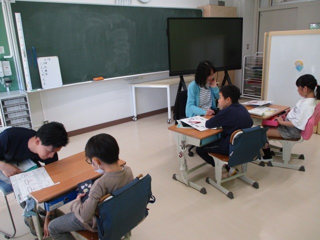 グループ別学習~わかたけ学級 公開日 2025/05/07 更新日 2025/05/07 今日のできごと わかたけ学級の子どもたちも各学年の運動会練習に参加します。それぞれの今日の活動を確認しながら、算数、国語の学習も進めました~